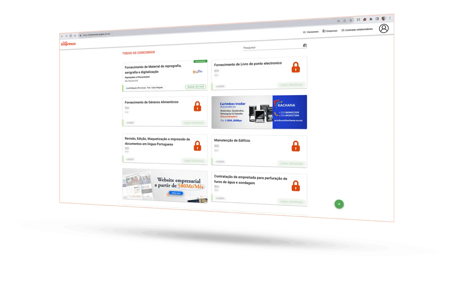 Encontrar todos os concursos abertos em Moçambique e pedidos de cotações publicados na nossa plataforma todos os dias.